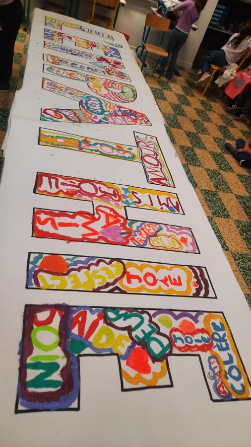 Voici un projet réalisé à l’initiative de l’école élémentaire Jules Ferry à Petite-Synthe. Des ateliers artistiques réalisés avec les élèves du CP au CM2 ont donné lieu à la création d’une fresque sur l’Empathie et les émotions.