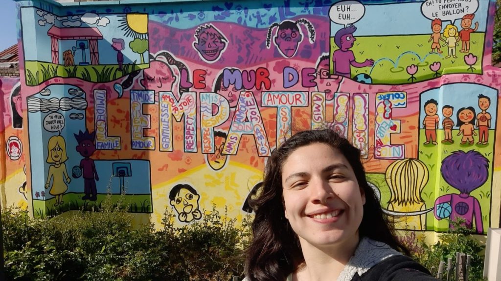 La fresque a tété réalisé entre 2025 et 2026. La composition reprend tous les éléments et les idées crées avec les élèves. Le tout donne un mélange coloré et harmonieux : Le mur de L’EMPATHIE.